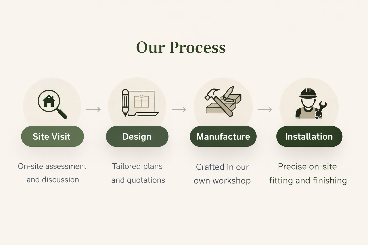 Yes. Many homes in Shrewsbury are period or listed properties. We design joinery that respects original features while improving layout and functionality.